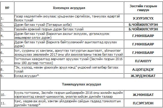 Засгийн газрын ээлжит хуралдаан өнөөдөр 11:00 цагт Төрийн ордон дахь Засгийн газрын хуралдааны танхимд болно. Хуралдаанаар сайд нар есөн асуудал хэлэлцэж, хоёр танилцуулгыг сонсохоор товложээ.