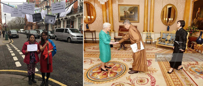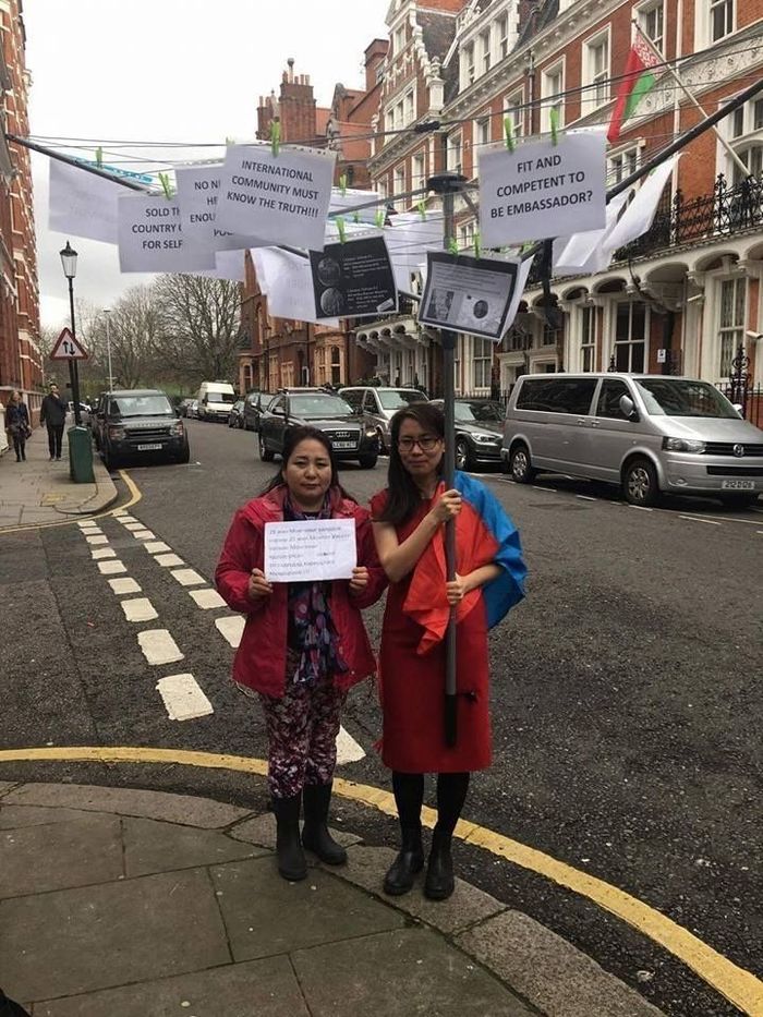 Харин түүнийг Монгол Улсын иргэн Г.Ичинхорлоо Их Британи дахь Монголын Элчин сайдын Яамны гадаа өчигдөр эсэргүүцсэн үзэл бодлоо илэрхийлжээ. Тэрбээр бохир улстөрч Их Британид элчин сайдаар томилогдон ирсэнд ийнхүү эсэргүүцлээ илэрхийлж байгаа аж. Г.Ичинхорлоо "Офшор данс", "Хууль, үнэн, ардчиллыг хүсч байна" гэх зэрэг агуулга бичиж ЭСЯ-ны гадаа нь өлгөжээ.