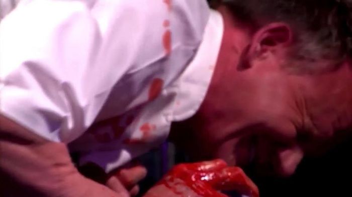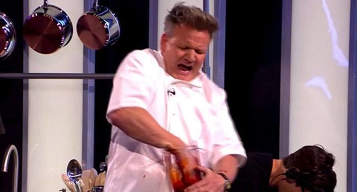 Түргэн ааш, хатуу ширүүн үг хэллэг болон мэдээж гайхалтай амттай хоол хийх чадвараараа дэлхийд алдартай тогооч Гордон Рамси "The Nightly Show" телевизийн нэвтрүүлгийн үеэр гараа тайрч олон хүнийг айдаст автуулжээ.