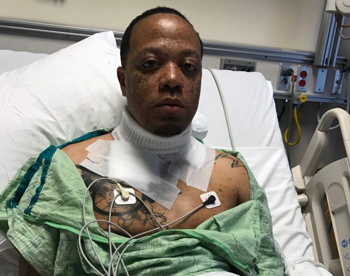 Удалгүй тэрээр бага зэрэг тэнхэл авч хүзүүний зүүлтээ тасдан эмнэлэг рүү явсан байна. Түүнийг хоёр, гуравдугаар зэргийн түлэгдэлтэй гэж оношилжээ. "Тогонд цохиулах миний амьдралдаа мэдэрч байсан хамгийн аймшигтай зүйл байсан" хэмээн Дэй хэвлэлд мэдэгдсэн байна.