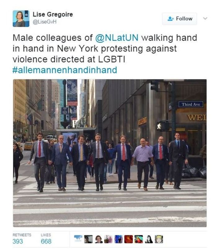 Германы демократ намын гишүүд болох Александер Пектод, Вүтер Күүмэс нар хуралд ирэх үедээ гар гараасаа хөтлөлцөн ирсэн байна. Мөн зөвхөн улс төрчдөөр ч зогсохгүй алдартнууд, хөлбөмбөгийн одод, дуучид ажилчид гээд олон залуус хөтлөлцөн өнгөрсөн ням гаригт Голланд улсад ижил хүйстэн хоёр залууг гудамжинд явж байхад нь хэсэг залуус бүлэглэн зодсон хэргийг эсэргүүцэн #handinhand хөдөлгөөнийг дэмжиж байгаагаа илэрхийлсээр байна.