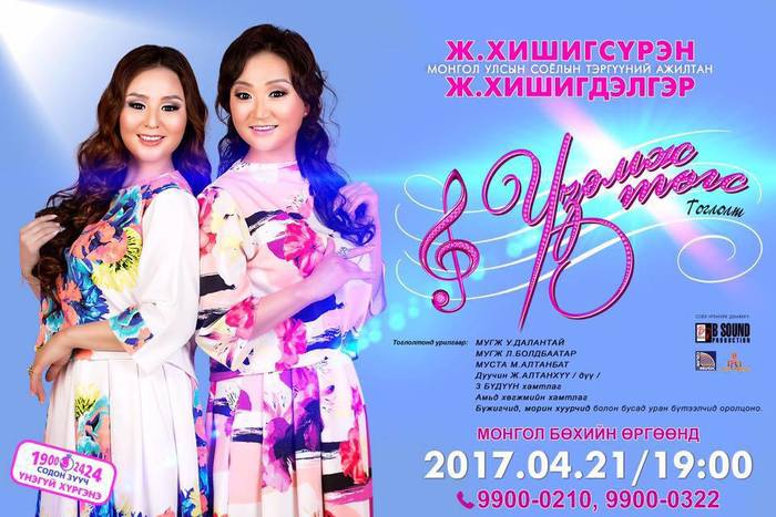 Гурван настай байхаасаа л урлагийн тайзан дээр гарч өдийг хүртэл урлагийн нандин утсыг таслалгүй хөглөж яваа эгч дүү дуучид маань хэдхэн хоногийн дараа буюу 4-р сарын 21-ны өдөр 19:00 цагаас Монгол бөхийн өргөөнд ийнхүү тоглолтоо нээ. Эрхэм дуучдын энэхүү тоглолтод урилгаар МУГЖ У.Далантай, МУГЖ Л.Болдбаатар, МУСТА М.Алтанбат, Дуучин Ж.Алтанхүү /дүү/, Гурван бүдүүн хамтлаг болон амьд хөгжмийн хамтлаг, бүжигчид, морин хуурчид оролцох юм. Ингээд эрхэм уншигч та бүхнийг "Үзэмж Төгс" нэртэй уран бүтээлийн тоглолтод урьж байна.
