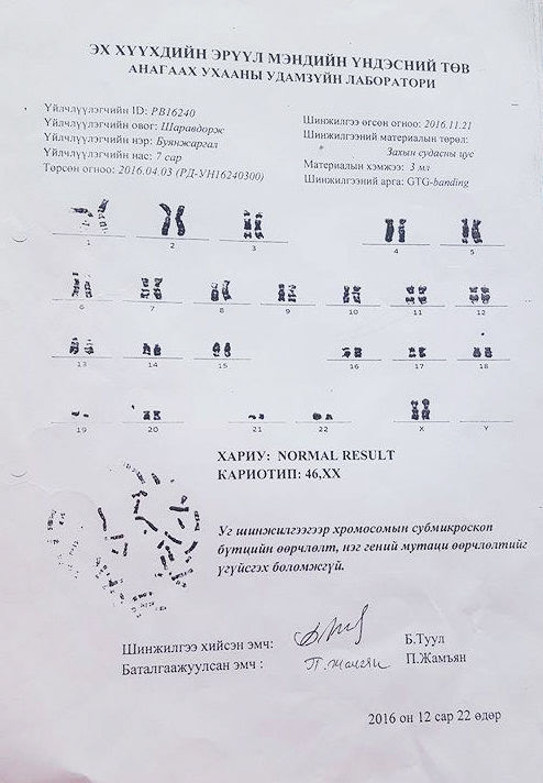 -Манайд ийм гажиг анх удаа бүртгэгдээд байгаа нь миний охин. Тэгэхээр яг тийм юмнаас болсон гэдгийг баттай хэлэхэд эрт байна гэсэн. Гэхдээ эцэг эхийн генээс нөлөөлөөгүй гэдэг эмнэлгийн дүгнэлт гарсан. Манай том охин зүв зүгээр төрсөн шүү дээ. Тэгэхээр гадны нөлөө л нөлөөлсөн болов уу.