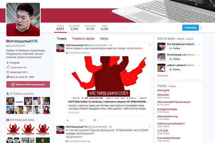 Тэр төрийн тэргүүн болоод юу хийхээр төлөвлөж байгаа, түүний бодлого ямар байх талаар бодоод ч хэрэггүй. Аз таарч үзсэн сайлсан муулсан хэдэн нэвтрүүлгээр л сонголтоо хийх болчихоод байгаа юм. Тиймээс улс төрд бугшсан уламжлалыг сөрж, бодлого ярьж гарч ирж байгаа залуу гишүүний санаачилгыг маш олон хүн дэмжиж байна. Нийгэмд зөв бодолтой, эрүүл үзэл санаатай гэсэн тэр энэ нам гэлтгүй олон хүн мэтгэлцээнийг дэмжиж, “Мэтгэлцүүлье” гэсэн чэллэнж буюу уриалга ихээр тархжээ.