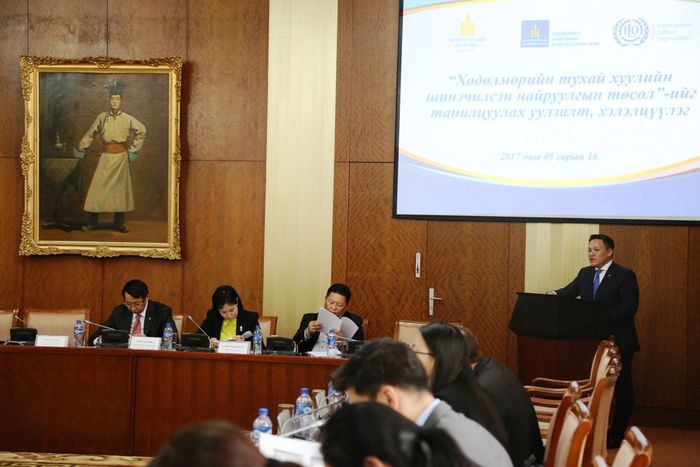 Улсын Их Хурлын Нийгмийн бодлого, боловсрол, соёл, шинжлэх ухааны байнгын хороо, Хөдөлмөр, нийгмийн хамгааллын яам хамтран “Хөдөлмөрийн хуулийн шинэчилсэн найруулгын төсөл танилцуулах уулзалт, хэлэлцүүлэг”-ийг өнөөдөр Төрийн ордонд зохион байгууллаа. Тус уулзалт, хэлэлцүүлэгт УИХ-ын гишүүд, Олон улсын хөдөлмөрийн байгууллагын төлөөлөгчид, нийгмийн түншлэгч талуудын төлөөлөл, хөдөлмөрийн асуудлаар мэргэшсэн эрдэмтэн, судлаачид,төрийн болон хувийн хэвшлийн байгууллагынхан оролцож Хөдөлмөрийн тухай хуулийн шинэчилсэн найруулгын төсөлтэй танилцаж, санал бодлоо солилцсон юм.