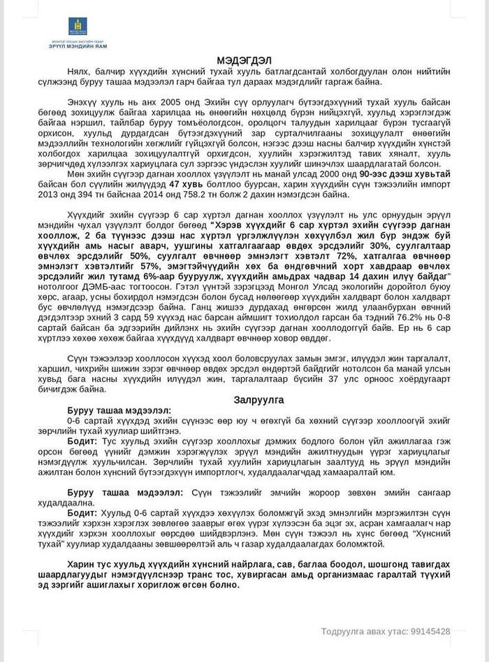 Нялх балчир хүүхдийн хүнсний тухай хууль батлагдсантай холбоотой олон нийтийн сүлжээнд эерэг, сөрөг мэдээллүүд гараад буй. Үүнтэй холбогдуулан Эрүүл мэндийн яамнаас дараах залруулга, мэдэгдлийг гаргажээ.