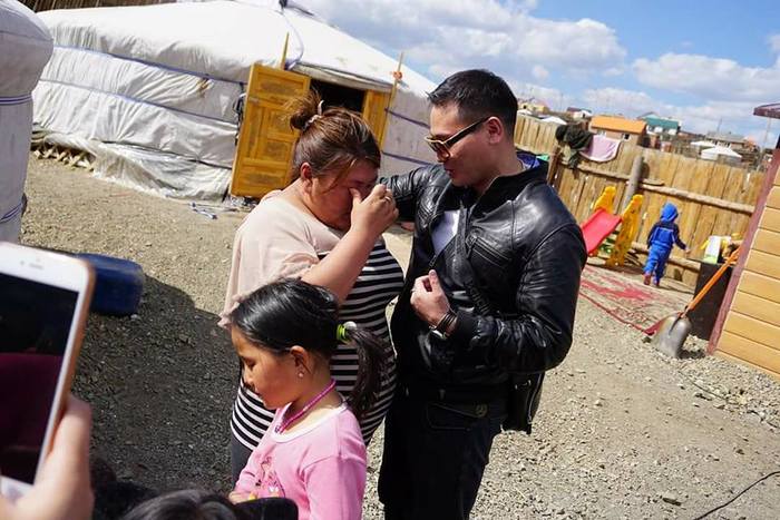 Зурагтаар үзэж байсан хүн гэрт нь ороод ирнэ гэж санаагүй Сарнайд энэ нь гэнэтийн байсан юм. Тэрбээр энэ үеэр зөн билэгчээс адис авч, аз жаргал баяр баясгалан авчирдаг хамгаалалтын бугуйвч бэлгэнд авсан.
