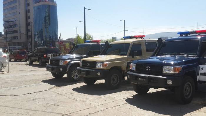 “Эрдэнэс Монгол” ХХК-ны зүгээс Өмнөговь аймаг дахь Цагдаагийн газрын Гэрээт тасгийн алба хаагчдын ажиллах нөхцөл бололцоог сайжруулах, замын хөдөлгөөний аюулгүй байдлыг хангах ажлын хэрэгцээнд “Toyota Ланд-76” маркийн цоо шинэ 3 ширхэг автомашиныг түлхүүрийг гардуулан өглөө.