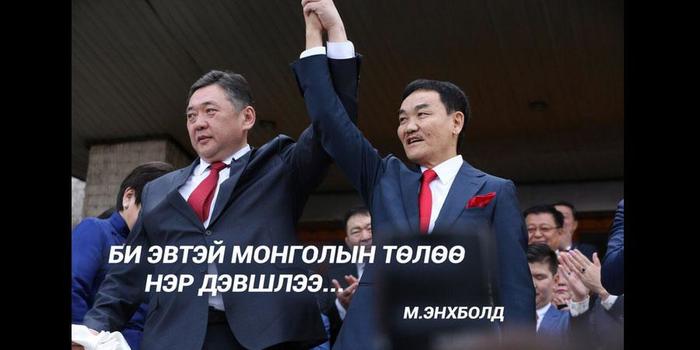 Нэр дэвшигч Миеэгомбын Энхболд юун түрүүнд “Монголчуудын түүхийг сөхвөөс эе эвдрэлцэж явсан үедээ эрч хүч суларч, эрдэм оюун нь ээдэрч явсан сургамжтай. Иймийн учир өнгөрсөн жилүүдийн уруудсан, доройтсон, хагарсан бүгдэд цэг тавих сонгууль болно” гэж ойлгож байгаагаа хэлэв. Эв нэгдэлгүй, хагарч бутарсан үедээ бид улс орныхоо амин чухал асуудлыг нийтийн эрх ашгийн тулд шийдвэрлэх бус бүлэг, хэсэгт талцан бутарч, тэдгээрийн эрх ашгийн төлөөх эцэсгүй тулаанд тэмцэлдсээр таарч байна. Эрдэс баялгаа ашиглаж ураглшлах эдийн засгийн томоохон шийдвэрүүдээ өнөөг хүртэл гаргаж чадалгүй, олон ч боломжийг алдаж энэ зуурт алдаа гаргаж, ажил цалгардуулсан албан тушаалтнуудад хариуцлага тооцож чадалгүй өнөөг хүргэсэн нь биднийг гадна, дотнын байгууллагаас тусламж эрэхээс аргагүй байдалд хүргэв. Ямартай ч, үеийн үед улс орны хүнд, хэцүү үед төрийн эрхийг барьж ухрах шахам зогсч байсан зүтгүүрийг ногоон гэрлээр урагшлуулж ирсэн МАН-ын хувьд энэ удаад ч сайн цаг ирнэ гэдэгт итгэл дүүрэн байгаа хийгээд, энэ сайн цагийг аль болох богино хугацаанд ирүүлэхийн төлөө энэ сонгуульд бид ялах ёстой гэдгээ нэр дэвшигч мэдэгдсэн юм. Түүний алхам тутамдаа өгч буй ЭВ НЭГДЭЛ гэх санаа нь эеийн тухай ойлголт төдий биш бөгөөд иргэн бүхэнд хамаатай улс орны бүхий л салбарын шийдвэрт хамтын ажиллагаа, нэгдмэл сэтгэл, зүтгэл шаардлагатайг онцолж байна гэж ойлгож болно. Түүнчлэн энэ өдөр МАН-аас нэр дэвшигч Миеэгомбын Энхболд ХОРЖИЙЛОО гэх үгийг хэлсэн нь санамсаргүй хэрэг биш ээ. Монголчууд бид морьд эргэхэд түрүүлэхийг бэлгэдэж ХОРЖИЙЛОО гэж хурайлдаг. Тэгвэл Монгол төрийн жолоог атгах сонгуулийн морьд яг энэ өдрөөс эхлэн эргэж байна гэсэн нь Төрийн тэргүүнээ сонгох өдөр хэзээ мөдгүй ирснийг илтгэлээ.