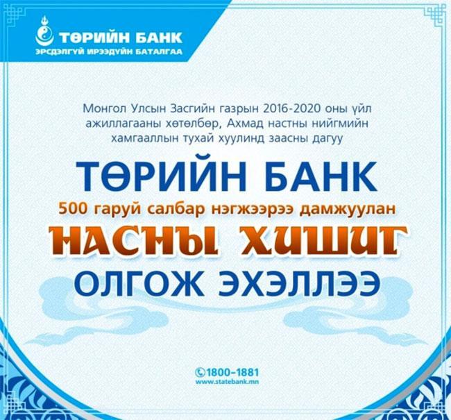 Энэ жилийн эхний ээлжийн мөнгийг нэгдүгээр сарын 25-ны өдөр буюу Цагаан сарын өмнө Төрийн банк болон бусад арилжааны банкаар дамжуулан олгосон бол Үндэсний их баяр наадмын өмнө олгох Насны хишгийг өчигдрөөс буюу 2017 оны зургаадугаар сарын 22-ноос эхлэн Төрийн банк олгож эхэллээ. “Насны хишиг” олгох журамд заасан шалгуур хангасан ахмад настан Та Монгол орны өнцөг булан бүрт байрлах Төрийн банкны өөрт ойр салбар нэгжээр дамжуулан Насны хишгээ аваарай.