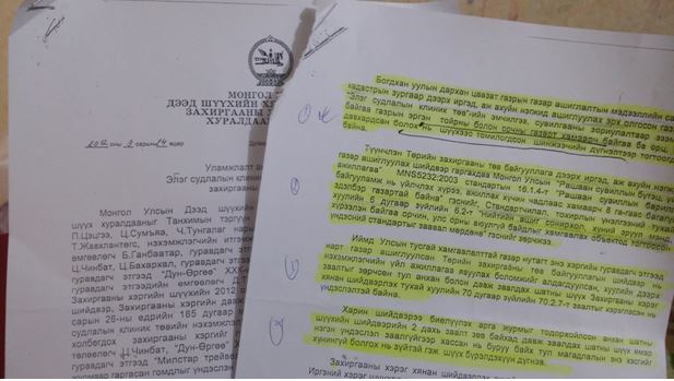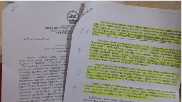 Монгол Улс шүүхийн шаталсан тогтолцоотой улс. Анхан, дунд, дээд гэсэн гурван шатны шүүх бий. Улсын Дээд шүүхийн шийдвэр гэдэг шүүх засаглалын дээд шат. Шүүх засаглалын дээд шатнаас эцэслэн гаргасан шийдвэрийг төрийн захиргааны төв байгууллага яамыг толгойлж байгаа сайд нар хэрэгжүүлэхгүй байгаа нь өөрөө хууль зөрчсөн гэмт хэрэг. Хуулийг хэрэгжүүлэхийг үлгэрлэн харуулж байх ёстой сайд нь эсрэгээрээ шүүхийн шийдвэрийг биелүүлэхгүй гэмт хэргийн шинж чанартай үйлдэл гаргаад сууж байна гэдэг ноцтой асуудал гэдэгтэй Ерөнхий сайд Та санал нэгдэнэ гэдэгт итгэлтэй байна. Тиймээс Улсын Дээд шүүхээс гаргасан тогтоолыг хэрэгжүүлэх тал дээр та дэмжлэг үзүүлэхийг хичээнгүйлэн хүсч байна.