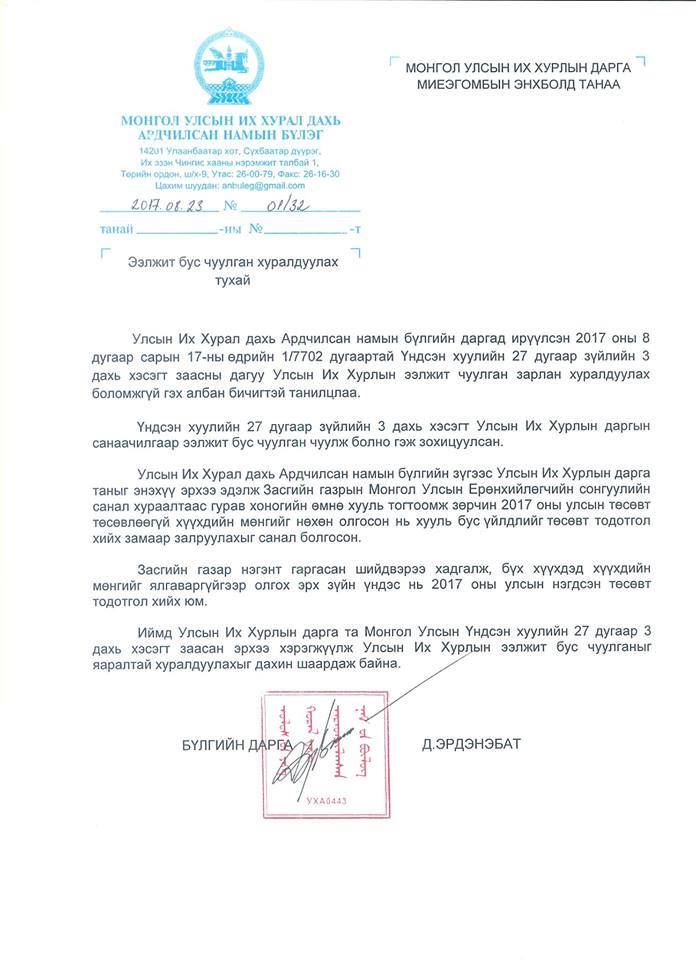 УИХ дахь Ардчилсан намын бүлэг хүүхдийн мөнгө олгох болон өвөлжилтийн бэлтгэл ажил хангахтай холбоотойгоор УИХ-ын ээлжит бусаар хуралдуулахыг УИХ-ын дарга болоод Ерөнхий сайд нараас удаа дараа шаардсан. Учир нь ес, аравдугаар сард 110 тэрбум төгрөгийн хүүхдийн мөнгөний дутагдалд орж, хүүхдийн мөнгө олгогдохгүй байх эрсдэл үүсч байгаа. Мөн өвөлжилтийн бэлтгэлтэй холбоотой Сангийн яамны Ардчилсан намын бүлэгт өнгөрсөн долоо хоногт мэдээлэл өгсөн. Сангийн яамны дэд сайд "Хөрөнгийн боломж байгаа. Харин үүнийг төсвийн тодотгол суулгахгүйгээр шийдэж болохгүй байна" гэдэг мэдээллийг өгсөн юм. Тиймээс ч УИХ дахь Ардчилсан намын бүлэг УИХ-ыг ээлжит бусаар хуралдуулаж, өвөлжилтийн бэлгэл ажил болоод хүүхдийн мөнгөний асуудлыг шийдэхийг УИХ-ын даргаас шаардсан. Тэгвэл УИХ-ын дарга М.Энхболд уг шаадлагад "УИХ-ын ээлжит бус чуулган зарлан хуралдуулах боломжгүй" гэх хариу өгсөн юм. Үүнтэй холбоотойгоор УИХ дахь Ардчилсан намын бүлгээс УИХ-ын ээлжит бусыг яаралтай хуралдуулахыг дахин шаардлаа.