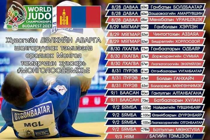 Жүдо бөхийн ДАШТ өнөөдөр Унгарын Будапешт хотноо эхэлнэ. Ирэх сарын 3 хүртэл зохион байгуулагдах тус тэмцээнд Монгол улсыг төлөөлж оролцох шигшээ багийн тамирчид эх орноосоо мордож, Будапешт хотноо очоод байгаа билээ.