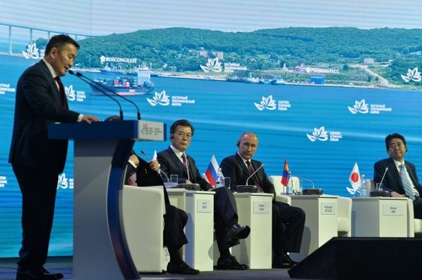 Монгол Улсын Ерөнхийлөгч Х.Баттулга хэлсэн үгэндээ “Энд хамтдаа илтгэгчээр оролцож байгаа ОХУ-ын Ерөнхийлөгч В.Путин, БНСУ-ын Ерөнхийлөгч Мүн Жэ Ин, Япон Улсын Ерөнхий сайд Шинзо Абэ нарт баяр хүргэе.