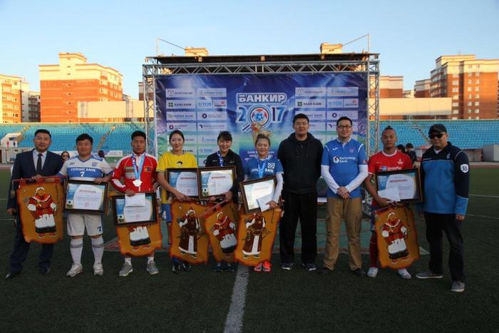 МонголУлсадбанкнытогтолцоо үүсч, хөгжсөний 93 жилийнойнхүрээнд болсон “БАНКИР-2017” хөлбөмбөгийн тэмцээн Төв цэнгэлдэхэд боллоо. Банкны салбарын ажилтнуудын дунд болдог тус тэмцээнд шигшээ болон дээд лигт тоглодог өндөр зэрэглэлийн тамирчид оролцдог учир өрсөлдөөнтэй болдог юм.
