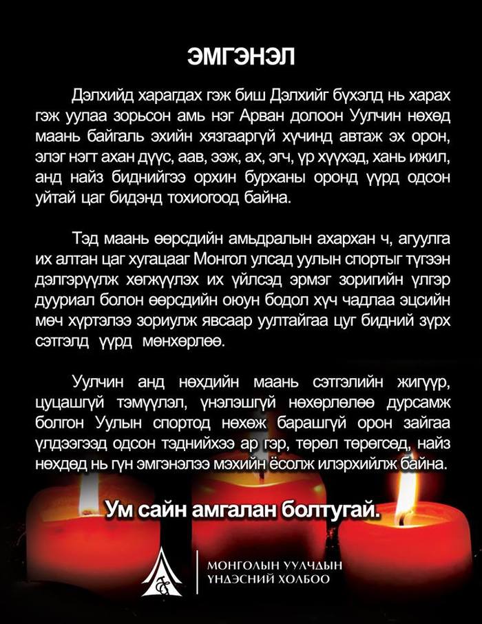 Тэгвэл эл харамсалтай үйл явдал болсонтой холбогдуулж Монголын уулчдын үндэсний холбооноос эмгэнэл илэрхийллээ.