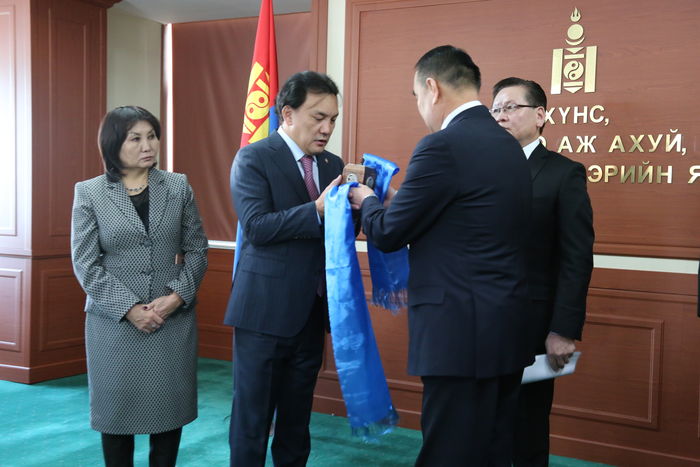 Тамга хүлээлцэх үеэр Шадар сайд Ө.Энхтүвшин УИХ-ын гишүүн, ХХААХҮ-ийн сайд Б.Батзоригийн талаар товч танилцуулгыг хийлээ. Мөн ХХААХҮ-ийн сайд асан П.Сэргэлэнгийн өнгөрсөн нэг жил хоёр сарын хугацаанд хийсэн ажлын талаар мэдээлэл хийж, цаашдын ажилд нь амжилт хүсэв.