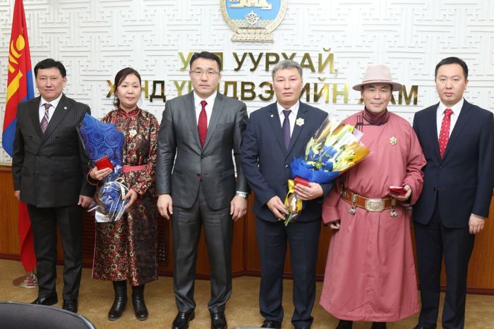 Шагналыг УУХҮ-ийн сайд Д.Сумъяабазар болон дэд сайд Д.Загджав, Төрийн нарийн бичгийн дарга Г.Нандинжаргал нар өнөөдөр гардуулан өгөв. Шагнал гардуулах үеэр сайд Д.Сумъяабазар "Салбарын тэргүүний хамт олондоо яамны удирдлагуудын нэрийн өмнөөс баяр хүргэе. 2018 он өнөөдрийн амжилтын гараагаар эхлэж байгаа шиг Монгол Улсын хөгжлийн суурийг тавьсан, өгөөжтэй он байгаасай гэж хүсэн ерөөж байна. Төрийн өндөр дээд одон медаль хүртсэн хүмүүстээ цаашдын ажилд нь өндөр амжилт хүсэн ерөөе" гэлээ.