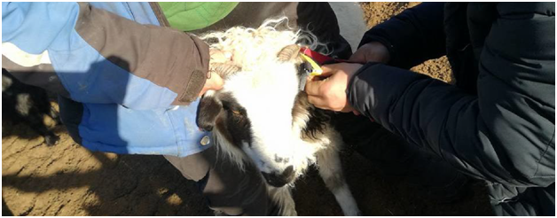Зураг 1. Мал эмнэлгийн үйлчилгээнд хамрагдсан малд дахин давтагдахгүй дугаар бүхий ээмэг зүүж байна.