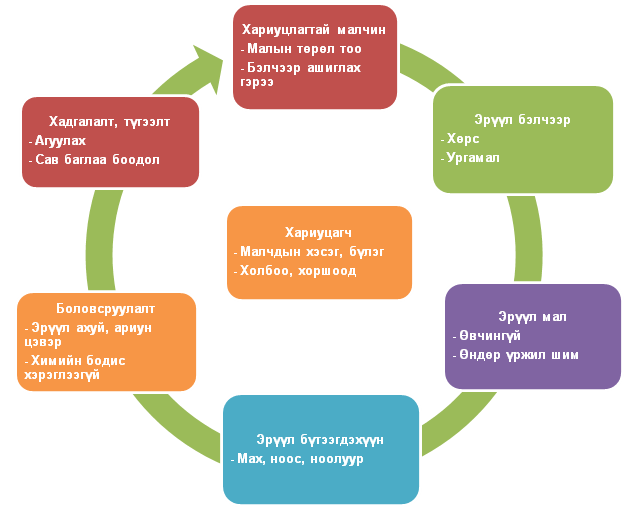 Энэ нь тухайн малчны мэдээллээс эхлээд малын бэлчээрийн эрүүл соргог байдал, эрүүл мэндийн үйлчилгээ, бүтээгдэхүүний эрүүл ахуй, ариун цэврийн шаардлага, хадгалалт, хэрэглэгчдэд хүргэх зэрэг махан бүтээгдэхүүний үйлдвэрлэлээс та бидний ширээн дээрх тавганд очих шат дамжлага алхам бүрийг хянах ажиллагаа юм.