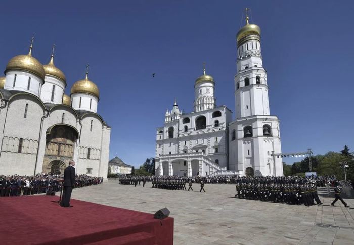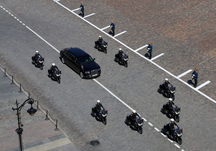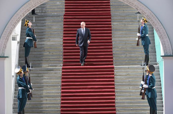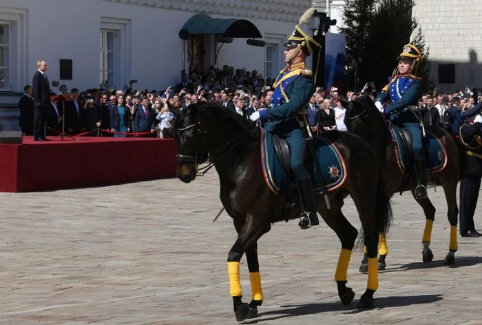Ноён Путины дөрөв дэх удаагийн тангараг өргөх ёслол харьцангуй даруйхан болжээ. Өмнө нь тэрбээр Москва хотын төв гудамжаар тансаг лимузин хөлөглөж, машины цуваагаар хүрээлүүлэн Кремльд ирдэг байсан. Харин энэ удаа Кремль дэх албан өргөөнөөсөө гарч, Кремлийн хэрмийн дотуур хэсэгхэн газар машинтай явжээ. Тэгэхдээ урьдын адил үнэтэй, тансаг гаднын машин унасангүй. Харин дотооддоо үйлдвэрлэсэн Cortege нэртэй лимузин хөлөглөв. Бас тэр тангаргийн баярын дараа төрийн хүлээн авалт хийхээс татгалзжээ. Гэхдээ тавдугаар сарын 9-нд тохиох Ялалтын баяраар хийхээр төлөвлөсөн байна.