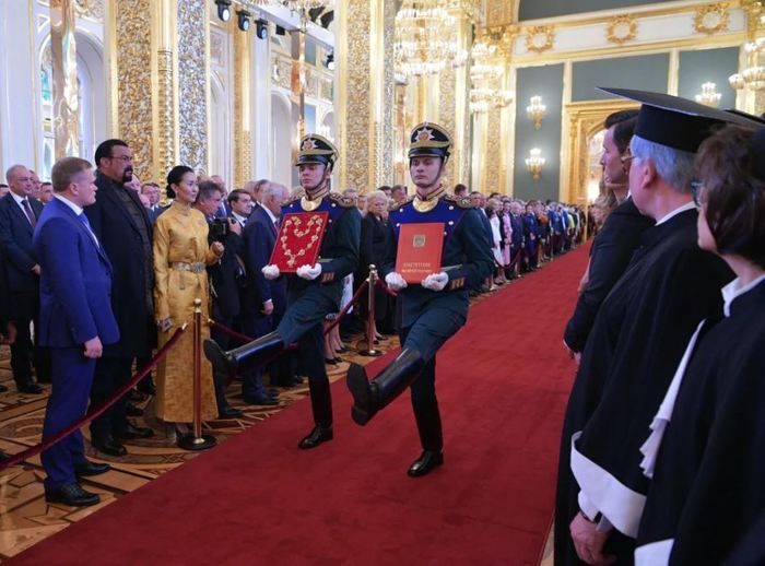 ОХУ-ын Ерөнхийлөгчөөр дөрөв дэх удаагаа улиран сонгогдсон Владимир Путин өчигдөр /2018.05.07/ Ерөнхийлөгчийн тангараг өргөв. Кремлийн ордны тансаг чамин танхимд болсон ёслолд 5000 гаруй зочид оролцжээ.