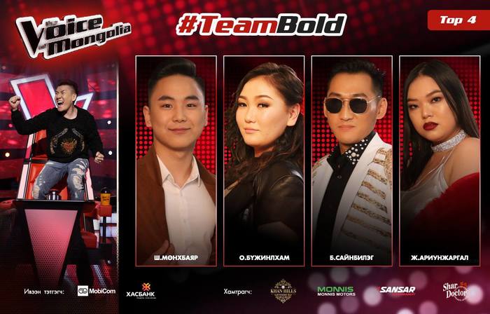 Voice Mongolia шоуны энэ удаагийн шатанд дөрвөн шүүгчийн багт тунаж үлдсэн 16 оролцогч зөвхөн монгол дуу дуулан өрсөлдөнө.