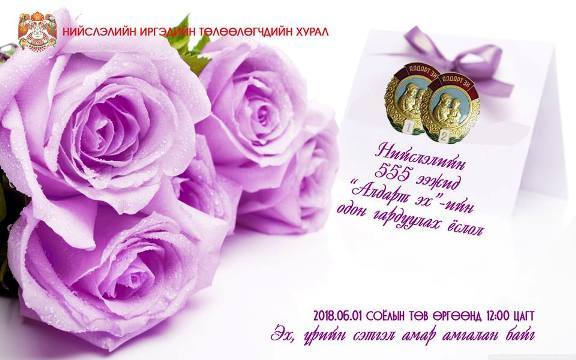 Эх үрсийн баярыг тохиолдуулан НИТХ-аас санаачлан нийслэлийн 555 ээжид “Алдарт эх”-ийн хоёрдугаар одон медаль гардуулахаар төлөвлөж байна. Энэ жилийн хувьд НИТХ-аас өмнөх жилүүдэд олгодог байсан “Алдарт эх”-ийн одон олгох ээжүүдийн тоог нэмэгдүүлж, 555 ээжид олгох болсноороо онцлог юм.