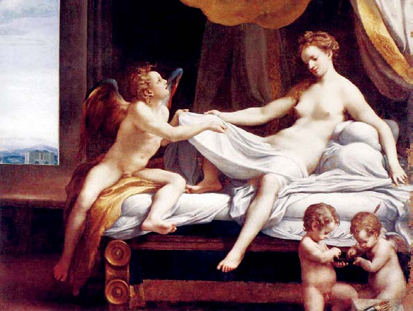 Бүхэлдээ тэнгэр заяат тансаг гоо сайхны мэдрэмж бүхий хосгүй бүтээл хэмээн бүтээлийг товчхон тодорхойлж болно. Зургийг Мантуя хотын Ф.Генза гүнгийн захиалгаар 1530 онд зурж, V Карл хаанд түүнийг хаанаар өргөмжлөгдөх ёслолыг нь тохиолдуулан бэлэглэжээ. Үүнээс хойш удтал олон цуглуулга дамжсаар Камилло Боргезе 1872 онд Париж 285 паундаар худалдан авсан нь одоо тус хот дахь түүний нэрэмжит уран зургийн галерейд чимэг болон гялалзаж байна.