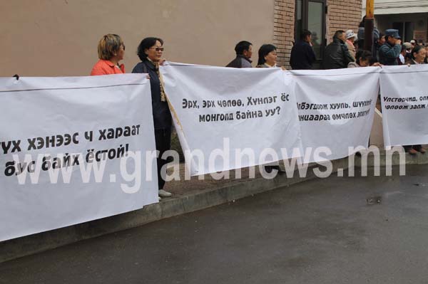 МАХН-ын дарга Н.Энхбаярыг шүүх хурал яг одоо Сүхбаатар дүүргийн шүүхэд хаалттай болж байгаа бөгөөд дүүргийн гаднах талбайд шүүгдэгчийн дэмжигчид “Монголд эрх чөлөө хүнлэг ёс байна уу”, “Ц.Элбэгдорж хууль шүүхийг ганцаараа өмчлөх ёсгүй”, “улс төрчид, олгирхууд шүүхэд нөлөөлж залж чиглүүлэхээ зогсоо” зэрэг бичигтэй цагаан өнгийн лоозон барин жагсч байлаа.Мөн авлигалын хэргээр шүүгдэж буй Н.Энхбаяр даргыг дэмжихээр 100 гаруй иргэн хүрэлцэн ирж зарим нь бүр дом шившлэг маягийн юм үйлдэж, рашаан цацан нүдэндээ нулимтай байсан юм.