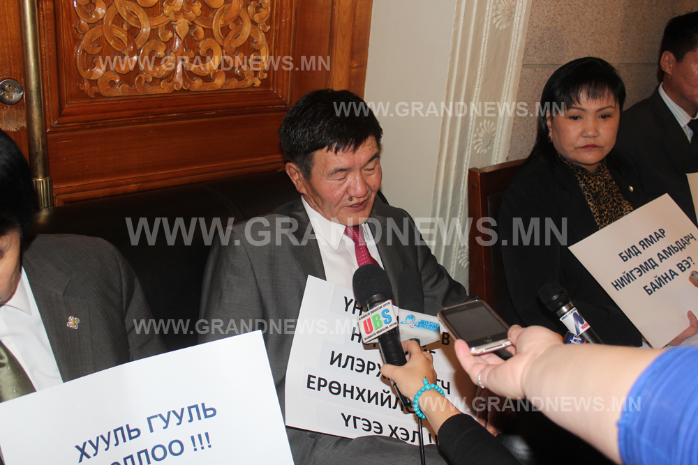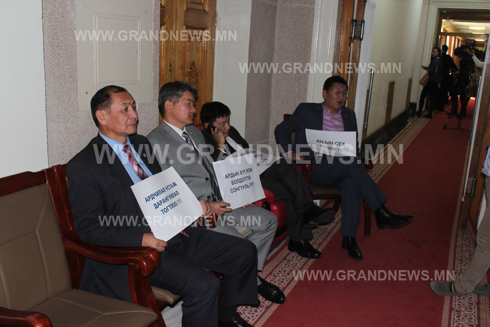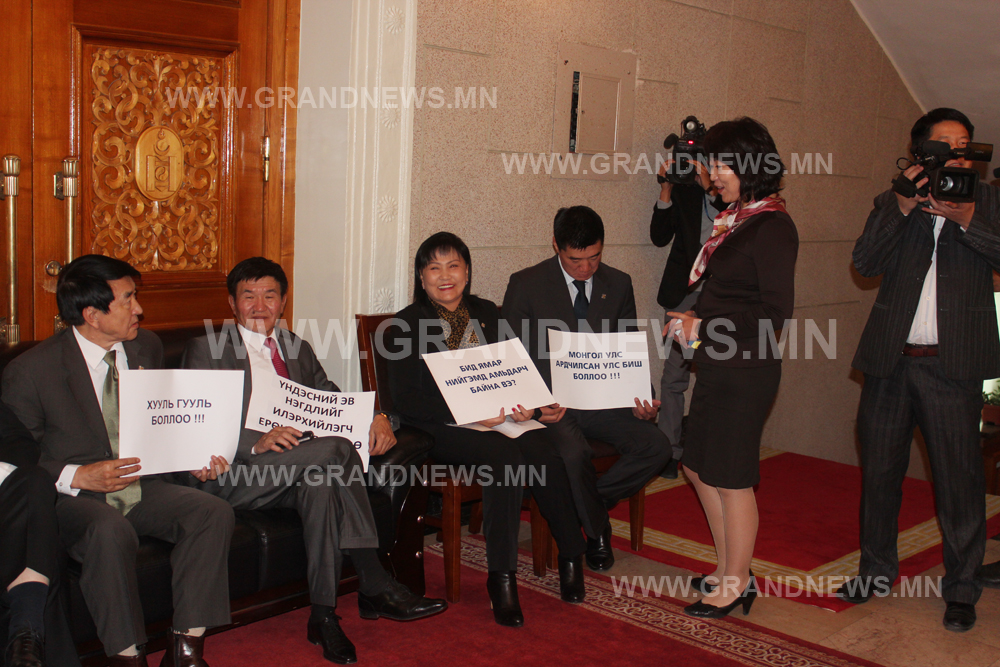 Төрийн ордоны дотор,гаднагүй лоозон барьж хууль ярин “ура” хашгирсан хүмүүс байгааг хүн бүр мэдэж байгаа байх. Тэгвэл хоёр талын тэмцэл улам хурцдаж ордоны гадна байгаа МАН-ын генсек Г.Занданшатараар ахлуулсан тэмцэгчид төрийн ордон тойрон “аялаж” өөрсдийн намын харьяалалтай биш л бол ордонд орж гарахыг үл зөвшөөрөн “хаанчлал” тогтоогоод байна. Харин ордонд байгаа намынхаа даргаараа ахлуулсан УИХ-ын гишүүд 15 цагт үргэлжлэх ёстой байсан чуулганы танхимын хаалгыг таглан та бүхнийг харж байгаачлан элдэв үгсээр дүүрэн цаас барин сууж байна. Ёстой “Эр хүн тамга ч барина, лоозон ч барина” гээчийн л юм болж байх шиг байна. Бараг түүхэндээ анх удаагаа ийнхүү жагсаал маягийн юм хийж суугааг харсан АН-ынхан болон улс төрийн хүрээнийхэн тэднийг “энэхүү тэнэгтэлээ эртхэн болих хэрэгтэй” хэмээн өөр хоорондоо ярьж сууна лээ. Харин хамтарсан засгийн газрын хүлгийн жолоог атгалцсан “Шударга” нөхдүүд хэдийгээр МАН-ынхантай сандалд хуваалцан суухгүй байгаа ч тэдний тэмцэлийг далдаас дэмжиж хүч нэмэх талаараа хэлсэн. Тиймээс ч МАХН-ын гишүүд чуулгандаа оролцохгүйгээ мэдэгдээд байгаа юм. Мөн тэднээс гадна бие даагч гурав ч МАН-ынханыгаа дэмжиж байгаагаа илэрхийлээд авсан.