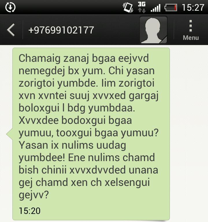Суудал нь өнцөгдсөн сайд гэвэл энэ эрхмийг хэлчихэд буруудахгүй байх. Сайдын суудалд суусан уу, үгүй юу л хэл аманд өртөж хэд хэдэн удаа заналхийлсэн захиа бас мессеж хүлээж аваад байгаа. Түүнд “send” хийсэн эрхмүүд ч дуу дуугаа аван баригдах болсон. Хамгийн сүүлд л гэхэд эмнэлэгт нь ч бүү мэд, шоронд нь ч бүү мэд байгаа экс Ерөнхийлөгчийн эхнэр О.Цолмон түүнтэй чатласан. Энэ талаар ч эрхэм сайдтан “Соёлтойгоор заналхийлэх юм даа” гээд мессежээ нийтэд дэлгэж орхисон нь энэ.