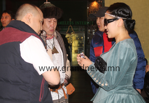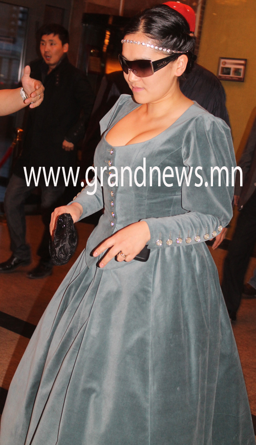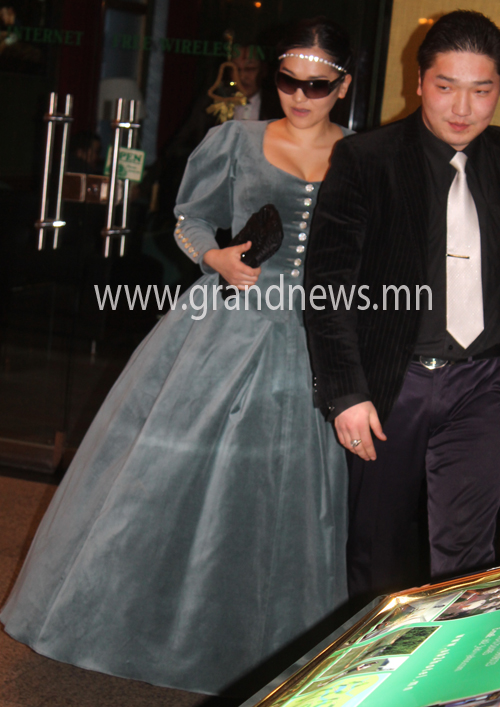 “Номин талст” хамтлагийн Дээгий толгой дээрээ соёмбо шивүүлж, “үстэй” байх эрхээ өөрийн дураар хассан түүнийг халзан толгой, хар костьюм, эсвэл үндэсний дээлтэй төсөөлөх хүн олон. Нүдний шилд нугасгүй Дээгийн эхнэр Жулияана нь ч мөн адил тас хар шилнээс салдаггүй нэгэн. Тэгвэл өчигдөр орой болсон ах дүү гурван мангасын “Андгай” тоглолтон дээр дуучин Дээгий гэргийгээ дагуулан хүндэт суудалд тухлуулсан юм. Жулияана ч яг л дээхэн үеийн Английн эрхэм дээдсүүдийн хүлээн авалтанд ирж байгаа аятай ихэмсэг хатагтай нар шиг дэрэвгэр хормойтой даашинзаар гангарч олны харааг булаалаа. Тас хар шилнээс салдаггүй уламжлалтай Жулияанад дэрэвгэр ногоон даашинз нь зохисон гэж ванлий.