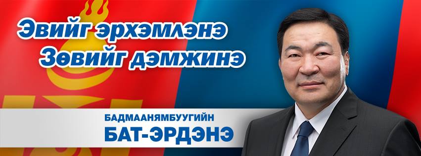 МОНГОЛ УЛСЫН ЕРӨНХИЙЛӨГЧИЙН 2013 ОНЫ СОНГУУЛЬД МОНГОЛ АРДЫН НАМААС НЭР ДЭВШИГЧ БАДМААНЯМБУУГИЙН БАТ-ЭРДЭНИЙН МӨРИЙН ХӨТӨЛБӨРУриа: Эвийг эрхэмлэнэ Зөвийг дэмжинэ Монгол Ардын Нам гишүүдийнхээ төдийгүй нийт ард түмний дунд “Эв нэгдлийн элчийг ард нийтээрээ тодруулъя” хэлэлцүүлэг өрнүүлж, олон түмний санаа бодлыг тодорхой асуудлуудаар тандан судлах замаар Ерөнхийлөгчийн сонгуульд өрсөлдүүлэх нэр дэвшигчээ тодруулж, миний нэрийг дэвшүүллээ. Миний бие үүнийг надад хүлээлгэж буй өндөр итгэл найдвар хэмээн хүлээн авч байна.
