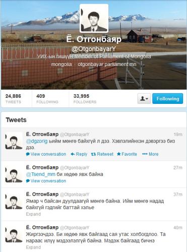 Тэгвэл УИХ-ын гишүүн Ё.Отгонбаяр өөрийн твиттер хуудсаараа албан ёсны байр сууриа илэрхийллээ. Тэрээр твиттер хуудаснаа “Жиргээчдээ. Би хөдөө явж байгаад сая утас холбогдлоо. Та нараас илүү мэдээлэлгүй байна. Мэдэж байгаад бичнэ. Ямарч байсан дуулаагүй мөнгө байна. Ийм мөнгө надад байхгүй гэдгийг баттай хэлье” хэмээн жиргэжээ.