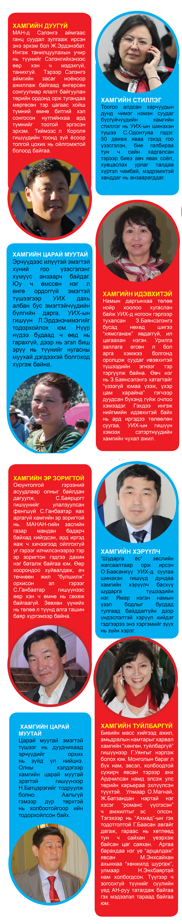 Шинэ парламент тун сонирхолтой дүр зураг бүхий. Гэр хорооллын түшээгээс авахуулаад гудамжны тэмцэгч хүртэл төрд дэвшсэн гээд ёстой л ард түмний төлөөлөл бүрдээ юу гэлтэй. Бараг тал хувь нь шинэковуудаас бүрдэх бөгөөд тэдний хамгийн хамгийнийг танд сонирхуулъя.