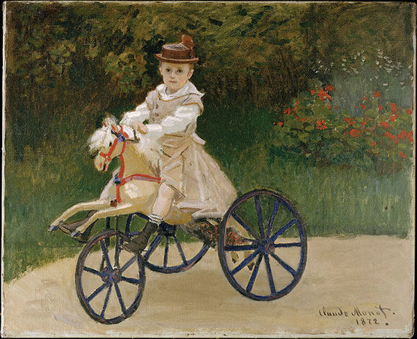Клод Моне ууган хүү Жан Монегоо хайртай морио унаж байгаагаар нь 1872 онд ингэж зуржээ. Бяцхан хүү Монегийн гэр бүл Аржантейд амьдарч байх үеийн хэд хэдэн зурган дээр дүрслэгдсан байдаг. Моне хүүгийнхээ балчир үеийг хөрөг зураг гэсэн албан хэлбэрээр буулгахаас илүүтэйгээр хамгийн дуртай тоглоомоороо гэрийнхээ арын цэцэрлэгт тоглож буйгаар буулгасан нь бидний үеийг хүртэл хадгалагдан иржээ.