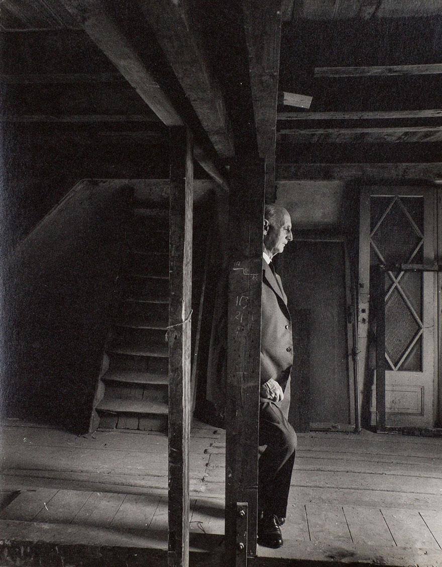 Отто Франк. Гэр бүлээсээ ганцаараа амьд үлдсэн тэрээр дайны үед хорогдож байсан хорогдох байрандаа дахиж ирсэн үеийн зураг. 1960 оны тавдугаар сарын гурван