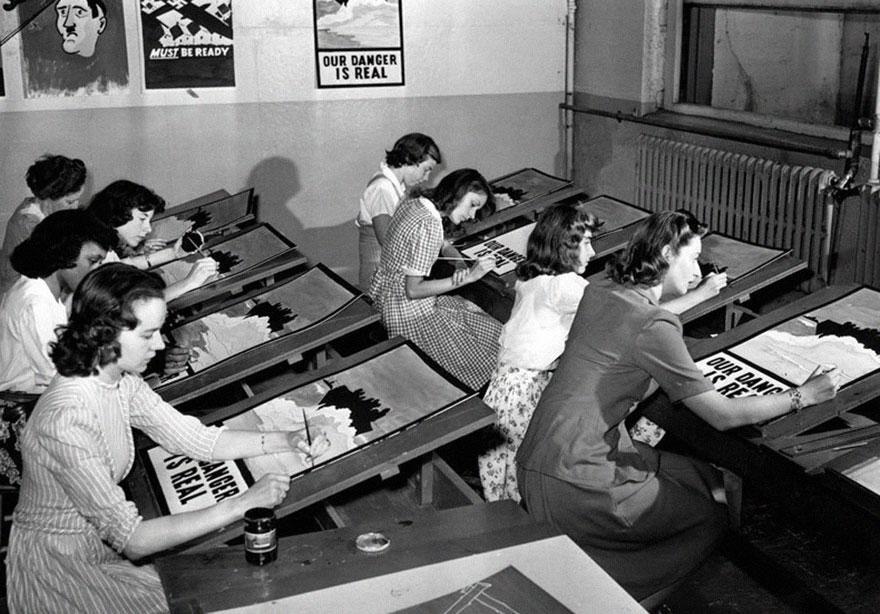 Дэлхийн хоёрдугаар дайны ухуулга зурагт хуудас зурж байгаа байдал. Вашингтон шуудан 1942 оны долдугаар сарын найман