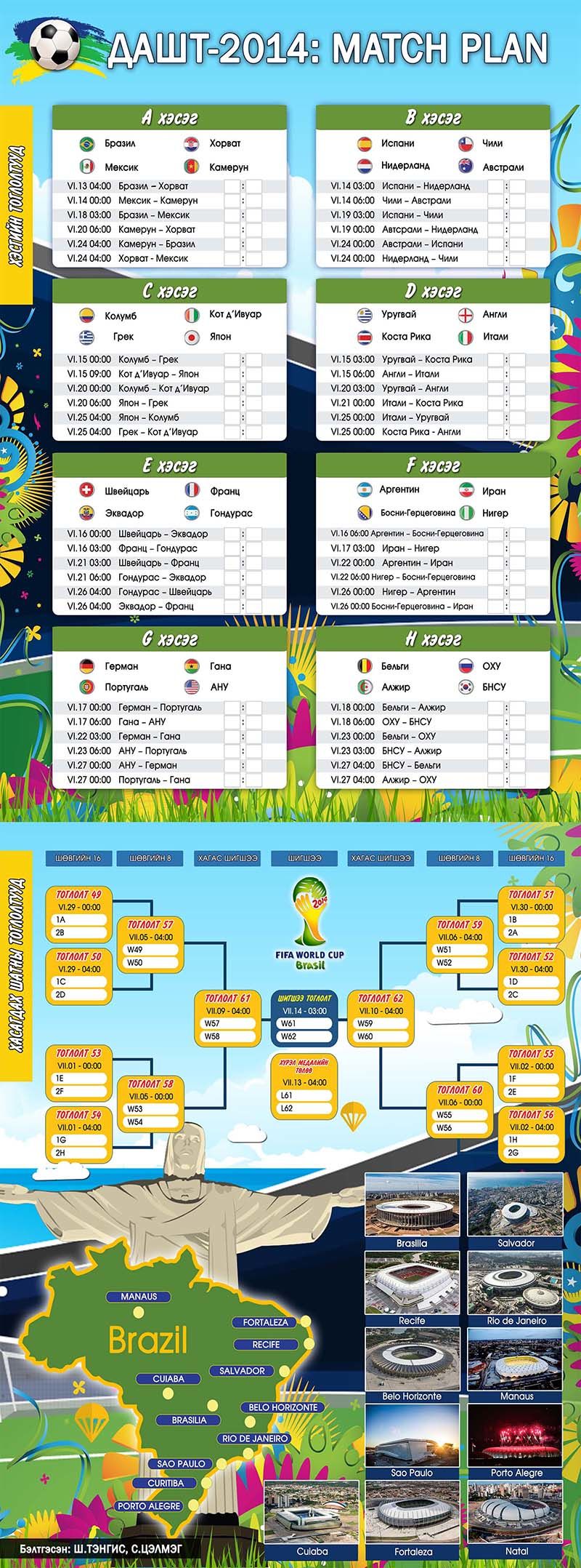 Монголын спортын сэтгүүлчид олимпийн наадам болон хөлбөмбөгөөс бусад спортын дэлхийн аварга шалгаруулах тэмцээнийг газар дээрээс нь албан ёснй эрхтэйгээр сурвалжилж байсан. Харин хөлбөмбөгийн дэлхийн аваргыг бол үгүй. Тэгвэл хүн төрөлхтний спортын томоохон үйл явдал "Brazil 2014 World Cup" өдөр хоногоор ойртсоор. Хөлбөмбөгийн фанат бүр энэхүү баяр цэнгэлд бие сэтгэлээ зэхэн буй хугацаанд та бүхэндээ нэгэн сюрприз дэлгэе.