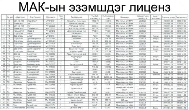 Сахилгагүй гишүүдийн тоонд зүй ёсоор бичигдэх Н.Номтойбаяр “Мунзуй” хочит хүн рүү хүйтэн мэс барьж дайрч, гэмтээсэн гэх асуудлаасаа салж санаа нь нэг амарч байгаа байх даа. За тэгээд хувь бизнес, хувь улстөрийн асуудлаасаа гадна зуны сайхан цагт зугаалж, наргиж яваа л байлгүй. Тэр ямар бүтэн сар амарлаа гээд том бизнес нь жижигхэн болчих биш. Дэндүү том бизнестэй хүн шүү дээ. Тодруулбал, стратегийн ач холбогдолтой, мөн стратегийн ач холбогдолтой гэж тогтоогдож болзошгүй хэд хэдэн томоохон ордын хайгуулын болоод ашиглалтын лицензийг эзэмших эрх Монголын Алт компанийн мэдэлд бий. Нарийн сухайт, Цагаан суварга, Адуунчулуун, Хөөт гэхчлэн хэдэн арваар тоологдох ашигт малтмалын ордууд энэ компанийн мэдэлд байдаг. Лизенз эзэмших эрх нь дуусах хугацаануудыг нь харахад олонхи нь 2030 он хүртэлх болоод түүнээс хойшхи хугацаанд хүчин төгөлдөр байхыг та дараах зургаас харж болно.