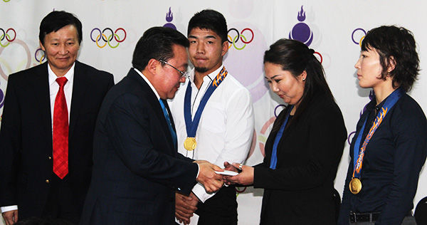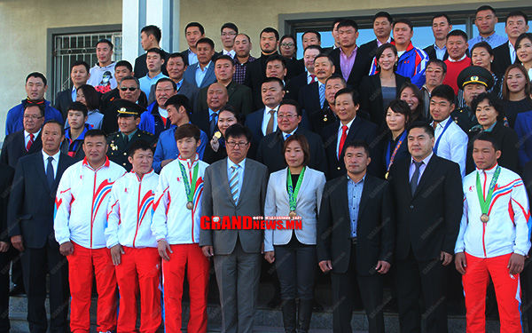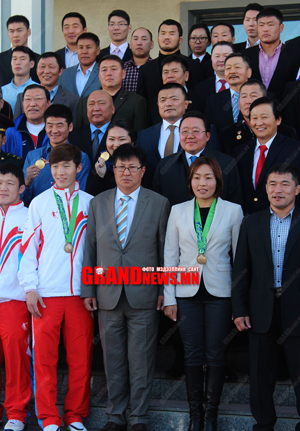 Инчён хотноо болсон Азийн спортын наадамд оролцоод ирсэн баг, тамирчидтай Ерөнхийлөгч Ц.Элбэгдорж уулзлаа. Тэрбээр баг, тамирчдын амжилтыг магтаж “Ерөнхийлөгчийн хишиг” нэртэй бэлэг гардуулсан юм. Мөн нийт тамирчдад улам их амжилт гаргахыг ерөөж, дурсгалын зураг татууллаа.