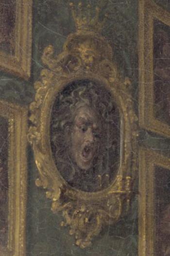 Мэдуза: Залуу хосын голд, цаад ханан дээр Караважийн 1597 онд зурсан Мэдузатай нэлээд адилхан зураг харагдана. Могойн үстэй энэхүү Герегийн домгийн мангасаар тохироогүй хосд тохиох гэж буй азгүй явдлыг илэрхийлжээ.