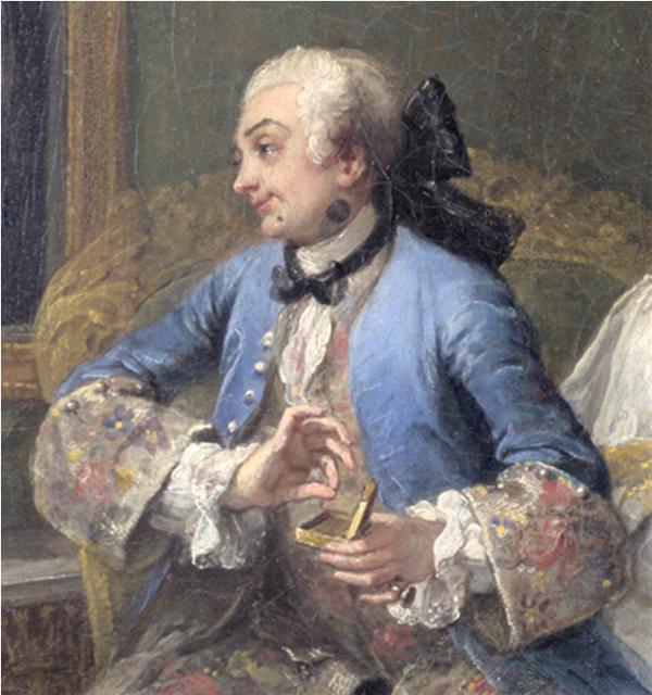 Хүргэн болох гэж буй залуу: Туниагүй виконт ирээдүйн эхнэрээсээ илүү толин дахь өөрийнхөө тусгалыг илүү бахдаж байх шиг байна. Хамгийн сүүлийн үеийн Франц загвараар хувцасласан гүнгийн хүү эх газарт өмнө нь хөл тавьсан нь эргэлзээгүй. Эцгийнхээ нэгэн адил тэрбээр зугаа цэнгэлийн амьдралаар замнагч бөгөөд хүзүүн дээр нь “Франц улаан бурхан” буюу тэмбүүний ул мөр болсон хар толбо харагдаж байна.