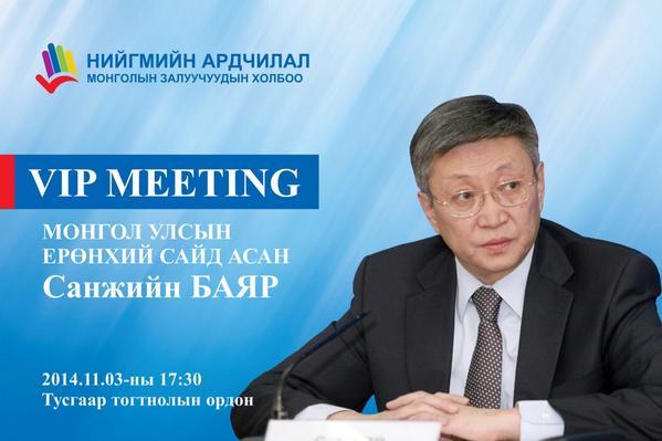 Өөрөө эхэлж явахгүй бол унана гэдгээ мэдэж байсан С.Баяр эргэн ирж байгаагаа албан ёсоор тунхаглах нь. Юу гэхээр 11 дүгээр сарын 3-нд Тусгаар тогтнолын ордонд болох НАМЗХ-ны "VIP meeting"-ийн зочноор Еренхий сайд асан С.Баяр оролцохоор болоод байна. АН арчаагаа алдаж байгаа энэ үед МАН эргэн чивчрэн чангарахаар алхмуудаа хийж байна л даа.