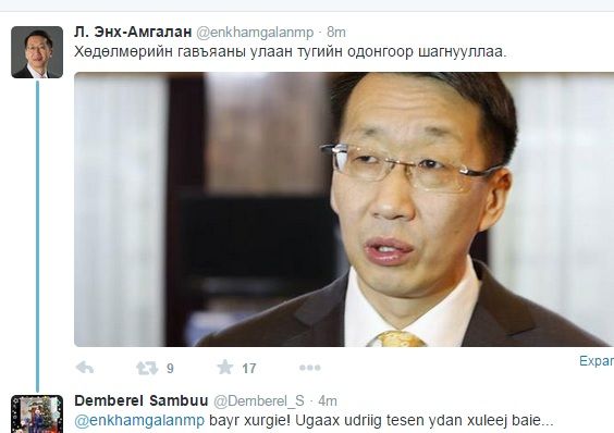 Шагналын хур буусан энэ өдөр олон хүн баяртай байгаа нь дамжиггүй. Гуйж биш гуядаж авсан шагналтнууддаа баяр хүргэж гэж цөөнгүй хүмүүс л хэлж ярьж байна. Тэгвэл УИХ-ын гишүүн Л.Энх-Амгалан өнөөдөр Хөдөлмөрийн гавьяаны улаан тугийн одонгоор шагнуулснаа өөрөө албан ёсоор жиргэж мэдэгдлээ. Бусад олонд илүү танигдсан хүмүүсийн тухайд шагнуулсан гэх мэдээлэл их гарч байгаа бол Л.Энх-Амгалан гишүүнийг хэн ч магтахгүй байгаа тул өөрийгөө ийнхүү зарлахад хүрсэн бололтой.