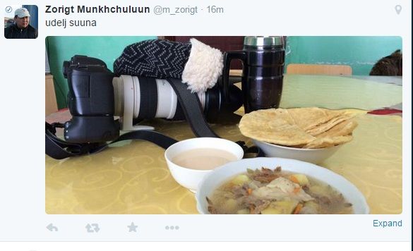 Тэгвэл “эротик” гишүүн замд гараад байгаагаа олонд мэдэгдэхийг хүссэн бололтой. Учир нь “Үдэлж сууна” гэх нэртэй ийм нэг зургаа тэр цахим хуудсандаа оруулсан байна. Оны өмнө улстөр нэлээд халах үед, нэлээд тод дуугараад, овоо төлөв байдлаар жиргээд байсан тэрбээр аппаратаа үүрээд, хөдөө гадаа зоргоороо явахыг илүүд үзсэн бололтой.