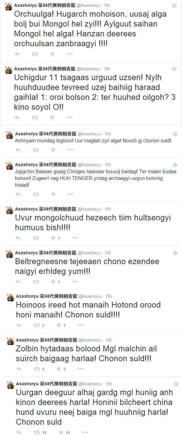 Францын нэрт кино найруулагч Жан Жак Анногийн бүтээл, Р.Анхнямын тоглосон “Чонон сүлд” кино сүүлийн хэдэн хоногийн гол ярианы сэдэв болоод буй билээ. Монголд төдийгүй дэлхий даяар яригдаж буй энэ киноны талаар мэргэжлийн сумогийн 69 дэх ёкозүна Асашёорюү Д.Дагвадорж өөрийн сэтгэгдлээ твиттерээрээ дамжуулан илэрхийлсэнийг толилуулж байна.