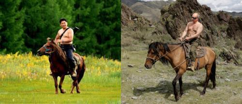 Улс төрчид дундаас цор ганцаараа ОХУ-ын ерөнхийлөгч В.Путинтай адил гэгддэг У.Хүрэлсүх угтаа бол түүнийг дуурайсан ч юм биш гэдэг. Чухам В.Путин тэр хоёрын хэн нь эхэлж авахуулсан юм, цээж нүцгэн буу бариад зогсож буй, морь унасан нохой эрхлүүлж буй гэрэл зургуудад тун адилхан “поза” харагддаг.
