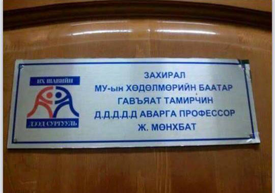 Нэгэн цагт Монгол бөхийн хоймор эзэгнэж явсан дархан аварга Х.Баянмөнх, Ж.Мөнхбат нарын цол гуншингийн уртыг гайхан бахархдаг байсан цаг саяхан мэт. Энэ хоёр эрхэм магад Монголын хамгийн урт, цол гуншинтай хүмүүсийн жагсаалтыг тэргүүлнэ. Харин тэдний нэг нь л өөрийн цол гуншингаа тоох юмгүй хээвнэг албажуулсан. Тэр бол мэдээж алиа, марзнаараа алдартай Мөөеө аварга. МУ-ын Хөдөлмөрийн баатар, гавьяат тамирчин, “Их шавийн” дээд сургуулийн захирал, Д.Д.Д.Д.Д аварга, профессор Ж.Мөнхбат гэсэн албан ёсны хаяг түүний нэрийн хуудас болон өрөөний үүдэнд дурайна шүү дээ. “Д.Д.Д.Д.Д” гэдэг нь “даяар дуурсагдах, далай даян дархан” гэх үгний товчлол.